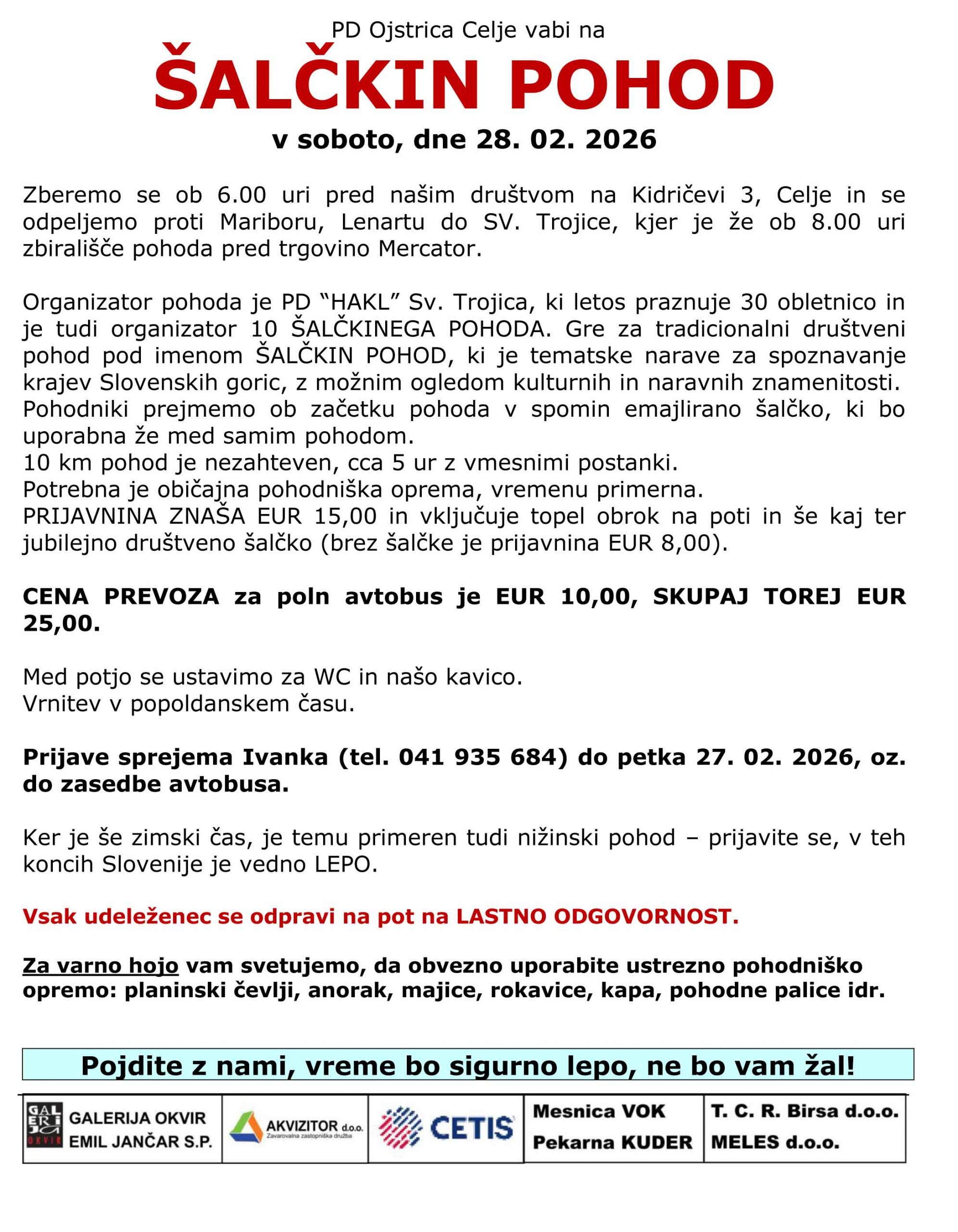 Šalčkin pohod 2026 – vabilo